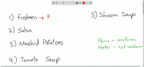Solved Classify Each Of The Following As A Homogeneous Or Heterogeneous Mixture 3 1 A Noodle Soup B Pizza C Ketchup